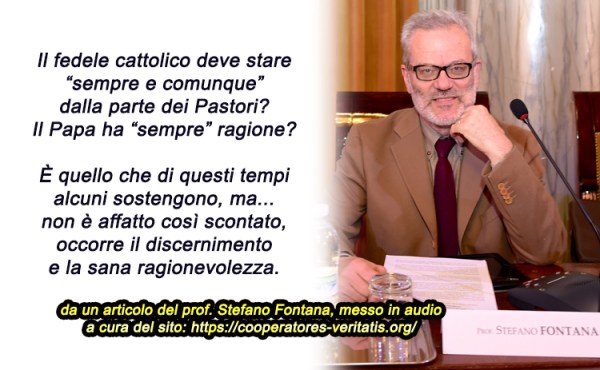 Da un bellissimo articolo del professore Stefano Fontana, vedi qui, vogliamo offrirvi questa catechesi sulla vera OBBEDIENZA al Papa ed ai Pastori, la quale non è in funzione delle proprie opinioni personali, ma è riferita esclusivamente ALL'OBBEDIENZA AL CRISTO e al Progetto di Dio per gli Uomini a riguardo, appunto, della Redenzione. Da qui si parla... Continua a leggere →