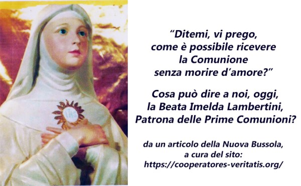 “Ditemi, vi prego, come è possibile ricevere la Comunione senza morire d’amore?” Tra le tante informazioni sulla storia della Beata Imelda, la piccola domenicana innamorata dell'Eucaristia la cui memoria è il 12 maggio, abbiamo scelto questa dalla Nuova Bussola, da leggere anche in video in forma di Catechesi per la Prima Comunione, ma anche per... Continua a leggere →