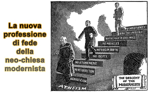 Cari Amici, come vi avevamo anticipato qui per la prima parte, eccoci alla seconda di questa hit-parade della neo chiesa. Bisognava occuparsi prima dei Dieci Comandamenti, che sono alla base del nostro Credo autentico, per occuparci ora dei dodici Articoli che sono le fondamenta di tutta la Dottrina Cattolica, il famoso "Depositum Fidei" di cui... Continua a leggere →