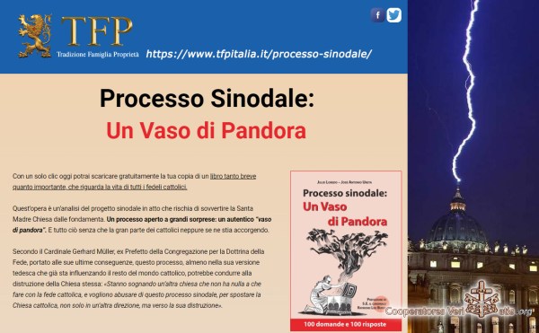 Premessa “Non stiamo disertando il Sinodo e non invitiamo alcuno a porsi CONTRO qualcuno… vogliamo solo che sia chiaro che un Sinodo è uno strumento attraverso il quale o passa LA VERITA’ o non passa nulla di buono, tertium non datur, non esiste un'altra via o una via di mezzo, il compromesso perché, come afferma... Continua a leggere →